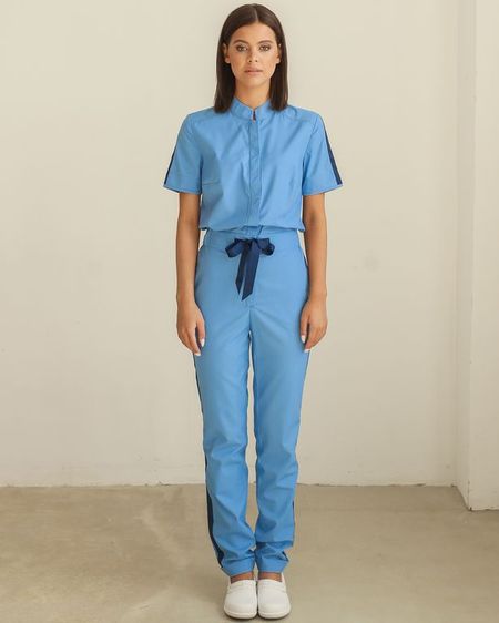 Главная » Аптека Комбинезон DOCLIKE медицинский женский DL 614/1 c лампас в стиле спорт-шик голубой/синий р 46 Просмотров 14 Одеть Доктора ООО