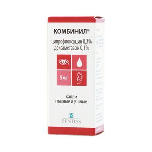 Показания к применениюИнфекционно-воспалительные заболевания глаза и его придатков: острый и подострый конъюнктивит; кератит; передний увеит; блефарит и другие воспалительные заболевания век; профилактика и лечение инфекционных осложнений после ранений глаза и его придатков и при операциях на глазном яблоке.Инфекционно-воспалительные заболевания уха: острый наружный отит; острый средний отит при шунте барабанной перепонки; острый средний отит с грануляциями и отореей при наличии шунта барабанной перепонки.Применение при беременности и кормлении грудьюПротивопоказано применение препарата при беременности и в период лактации.ПротивопоказанияГерпетический кератит и другие вирусные поражения роговицы и конъюнктивы; туберкулез глаз; грибковые поражения глаз; вирусные инфекции слухового прохода; перфорация барабанной перепонки; детский возраст до 18 лет; беременность; период лактации (грудного вскармливания); повышенная чувствительность к действующим веществам или к любому из вспомогательных ингредиентов препарата.Побочное действиеСо стороны органа зрения: роговидные инфильтраты, жжение, покраснение, зуд глаз, конъюнктивит, кератит, периокулярный отек, чувство инородного тела в глазу, фотофобия, затуманивание зрения, сухость глаза, отек век, гиперемия конъюнктивы, глаукома и повреждение зрительного нерва, снижение остроты зрения и сужение полей зрения, формирование катаракты, вторичная инфекция (грибковая и бактериальная), истончение роговицы и/или перфорация глазного яблока.Со стороны органа слуха: дискомфорт и боль в ухе, зуд в ухе, заложенность уха.Прочие: отек лица, замедление заживления ран, вкусовые перверсии, кожная сыпь.СоставДействующее вещество: Дексаметазон (dexamethasone) + ципрофлоксацин (ciprofloxacin)Концентрация действующего вещества (мг): ципрофлоксацин (в форме гидрохлорида) 3 мг, дексаметазон 1 мг
