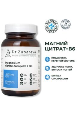 Главная » Аптека Комплексная пищевая добавка Dr. Zubareva Магний цитрат 400 mg + B6 25 mg 60 капсул Просмотров 8 Жива Продукт Про ООО