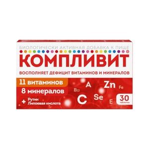 Главная » Аптека Компливит Таблетки 30 шт Просмотров 5 Таблетки двояковыпуклой продолговатой формы, покрытые пленочной оболочкой белого цвета. Отисифарм