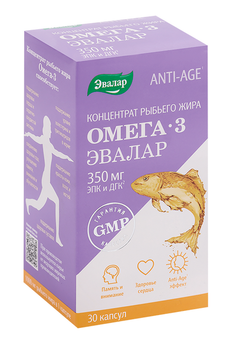 Концентрат рыбьего жира Омега-3, 1 г, 30 шт, капсулы