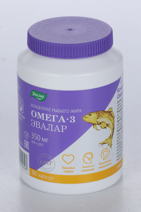 Концентрат рыбьего жира Омега-3, 1 г, 80 шт, капсулы