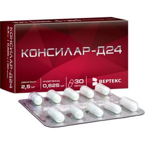 Твердые желатиновые капсулы № 3 с корпусом белого и крышечкой зеленого цвета. Содержимое капсул порошок или уплотненная масса белого или почти белого цвета, распадающаяся при нажатии стеклянной палочкой.