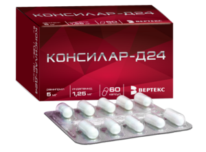 Твердые желатиновые капсулы № 3 с корпусом белого и крышечкой белого цвета. Содержимое капсул — порошок или уплотненная масса белого или почти белого цвета, распадающаяся при нажатии стеклянной палочкой.