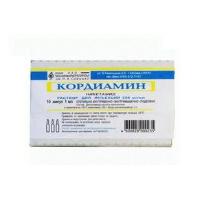 Главная » Аптека Кордиамин раствор для инъекций 250 мг/мл 1 мл 10 шт Просмотров 10 Кордиамин — раствор для инъекций, оказывающий аналептическое воздействие. Применяется при шоковых состояний, отравлении и угнетении дыхания. Дальхимфарм