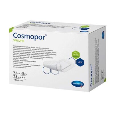 Cosmopor® silicone/Кocмoпop силикон представляет собой неактивную одноразовую самоклеящуюся стерильную и полупроницаемую повязку на рану (гидроцеллюлярную тонкую повязку), состоящую из нетканого материала основы (материала-носителя) и впитывающей подушечки для раны. Обе части повязки покрыты силиконовым клеевым перфорированным слоем и защищены пленкой.