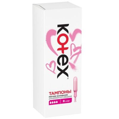 Тампоны Kotex® (Котекс) супер с аппликатором — новый уровень комфорта! Тампоны женские гигиенические с аппликатором Kotex® (Котекс) супер (для обильных выделений). Форма выпуска: 8 тампонов в картонной коробке. Условия хранения: Хранить в сухом месте. Не бросать в канализацию. Срок годности: 3 года с даты изготовления, указанной на упаковке. Изготовитель: KIMBERLY-CLARK. Изготовлено в Чешской республике. Внешний вид товара может отличаться от изображённого на фотографии.