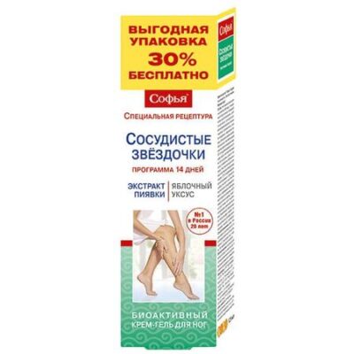 Главная » Аптека Крем-гель для ног экстракт пиявки и яблочный уксус Сосудистые звездочки Софья туба 125мл Просмотров 7 КоролевФарм ООО