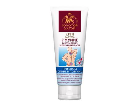 Главная » Аптека Крем Золотой Алтай д/суставов/спины/поясницы мумие/сабельн/пчелин яд, 250 мл Просмотров 7 Алтэя ООО