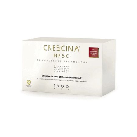 Упаковка содержит ампулы двух типов: для стимуляции роста волос (янтарные) и против выпадения волос (прозрачные). Они предназначены для комплексного воздействия на преждевременное выпадение волос и стимулирования фолликул в стадии покоя, в том числе неактивных. Средство эффективно при облысении, не связанным с патологическими причинами. Способствует физиологическому росту волос, создает идеальные условия для активизации собственных клеток волосяного фолликула. Запатентованная трансдермальная технология позволяет активным веществам комплексов Re- Growth, HSSC и Booster проникать через волосяной покров не только через фолликулы (фолликулярные островки), но и трансдермально — через всю поверхность кожи головы (эпидермис и дерму). Благодаря своему низкому молекулярному весу и наличию 3 усилителей, функциональные активные ингредиенты быстро проникают глубоко в слои кожи, за счет чего обладают исключительной эффективностью. Форма выпуска Лосьон Фармакологический эффект Crescina® Re-Growth (янтарные ампулы) содержит запатентованную формулу (цистеин, лизин и гликопротеин), способствующу естественному росту волос. Сосудорасширяющие компоненты (бензилникотинат) стимулируют кровообращение, а комплекс Stem-Engine защищает резерв собственных стволовых клеток волосяного фолликула. Также добавлены защитные компоненты Diguanosine TP, Prolifex, изофол и салициловая кислота. CRESCINA® ANTI-HAIR LOSS HSSC (прозрачные ампулы) содержит активные компоненты (гидроксипролин, аспаргиновую кислоту и таурин), улучшающие эластичность стенок фолликула. Активатор ферментов повышает скорость ферментативных реакций, стимулирует обменные процессы в клетках волосяного фолликула. Комплекс HSSC предотвращает преждевременную потерю волос. Собственные стволовые клетки волосяного фолликула обеспечивают рост и циклический характер жизнедеятельности фолликула. Его регенерация требует активизации этих стволовых клеток. Комплекс STEMENGINE защищает резерв стволовых клеток фолликула, обеспечивает повышение активности фолликулов, в том числе недействующих, и стимулирует их рост. Показания Андрогенная алопеция у мужчин. Сезонная (осенняя, весенняя) алопеция. Пост стрессовое выпадение волос. Профилактика и лечение телогенового выпадения волос. Послеоперационное выпадение волос. Выпадение волос после химиотерапии при онкозаболеваниях. Гормонозависимое выпадение волос. Противопоказания Открыть стеклянную ампулу специальным пластиковым колпачком, который входит в состав набора. Нанести средство на кожу головы по линиям проборов, используя специальный силиконовый колпачок, который входит в состав набора. Кончиками пальцев равномерно распределить средство по всей коже головы легкими массажными движениями. Может возникнуть ощущение легкого жжения и небольшое покраснение кожи, связанное с действием средства (данные ощущения пройдут через 5-10 минут). После использования и завершения нанесения помыть руки. Кресцину следует наносить на чистую и сухую кожу головы – 1 раз в день. Используйте ежедневно 5 дней подряд, далее 2 дня перерыв (например, с понедельника по пятницу, суббота и воскресенье перерыв, далее снова 5 дней подряд) Минимальный рекомендованный курс — 2 месяца. В качестве профилактики повторяйте курс 1-2 раза в год Только для наружного применения. Не применять в виде инъекций. Не гл