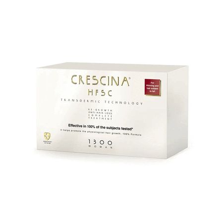 Ампулы КРЕСЦИНА ТРАСДЕРМИК КОМПЛЕКС лосьон для возобновления роста волос + лосьон против выпадения волос ДЛЯ ЖЕНЩИН Дозировка 1300 / 10+10 ампул. Упаковка содержит ампулы двух типов: для стимуляции роста волос (янтарные) и против выпадения волос (прозрачные). Они предназначены для комплексного воздействия на преждевременное выпадение волос и стимулирования фолликул в стадии покоя, в том числе неактивных. Средство эффективно при облысении, не связанным с патологическими причинами. Способствует физиологическому росту волос, создает идеальные условия для активизации собственных клеток волосяного фолликула. Запатентованная трансдермальная технология позволяет активным веществам комплексов Re-Growth, HSSC и Booster проникать через волосяной покров не только через фолликулы (фолликулярные островки), но и трансдермально — через всю поверхность кожи головы (эпидермис и дерму). Благодаря своему низкому молекулярному весу и наличию 3 усилителей, функциональные активные ингредиенты быстро проникают глубоко в слои кожи, за счет чего обладают исключительной эффективностью. Средства не содержат миноксидил и его производные: • Нe имеют синдрома отмены; • Нe проникают в кровоток; • Нe имеют риска осложненных реакций. Активные компоненты: — Запатентованный комплекс Re-Growth (Активатор собственных стволовых клеток, Цистеин, Лизин, Гликопротеин, Дигуанозин ТР, Пролифекс, Изофол) инкапсулированный в специальный носитель, обеспечивающий постепенное и длительное высвобождение активных компонентов в волосистой части головы; — Запатентованный комплекс Anti-Hair Loss (Гидроксипролин, Аспарагиновая кислота, Активатор ферментов, Таурин, Гидролизованный дрожжевой белок и Ацетил тетрапептид-3) инкапсулированный в специальный носитель, обеспечивающий постепенное и длительное высвобождение активных компонентов в волосистой части головы; — Комплекс HSSC, защищающий и поддерживающий здоровое состояние кожи головы. Как работает: СRESCINA® RE-GROWTH (янтарные ампулы) содержит запатентованную формулу (цистеин, лизин и гликопротеин), способствующую естественному росту волос. Сосудорасширяющие компоненты (бензилникотинат) стимулируют кровообращение, а комплекс Stem-Engine защищает резерв собственных стволовых клеток волосяного фолликула. Также добавлены защитные компоненты Diguanosine TP, Prolifex, изофол и салициловая кислота. СRESCINA® ANTI-HAIR LOSS HSSC (прозрачные ампулы) содержит активные компоненты (гидроксипролин, аспаргиновую кислоту и таурин), улучшающие эластичность стенок фолликула. Активатор ферментов повышает скорость ферментативных реакций, стимулирует обменные процессы в клетках волосяного фолликула. Комплекс HSSC предотвращает преждевременную потерю волос. Собственные стволовые клетки волосяного фолликула обеспечивают рост и циклический характер жизнедеятельности фолликула. Его регенерация требует активизации этих стволовых клеток. Комплекс STEMENGINE защищает резерв стволовых клеток фолликула, обеспечивает повышение активности фолликулов, в том числе недействующих, и стимулирует их рост. Более 20 клинических испытаний эффективности свидетельствуют о способности комплекса CRESCINA HFSC стимулировать естественный рост волос за счет воздействия на волосяные луковицы в стадии покоя. • Данные исследования показали увеличение количества новых волос: от 7 до 41 новых волос на уч