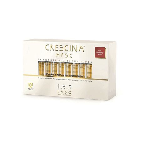 КРЕСЦИНА ТАСДЕРМИК для возобновления роста волос ДЛЯ ЖЕНЩИН Дозировка 500/20 ампул/Crescina Transdermic Re-Growth HFSC 500 for Women (20 vials). Кресцина Трасдермик /Crescina Transdermic Re-Growth HFSC для возобновления роста волос — активатор собственных стволовых клеток волосяных фолликул. Это ампульное косметическое средство поверхностного нанесения, восстанавливающее физиологический рост волос при постепенном уменьшении их количества и качества из-за снижения активности волосяных фолликул. Состав средства создан на основе более, чем 30 активных ингредиентов: аминокислот, пептидов, экстрактов растений и запатентованных комплексов, для поверхностного применения. Основная формула Crescina Transdermic Re-Growth HFSC защищена рядом патентов и содержит две аминокислоты (цистеин, лизин) и фактор роста (гликопротеин). Данный состав, воздействуя на здоровые фолликулы, находящиеся в стадии покоя, позволяют обеспечить физиологический рост волос благодаря стимулированию выработки кератина и пролиферации кератиноцитов, что способствует прорастанию луковицы и дальнейшему росту волоса. Запатентованная трансдермальная технология позволяет активным веществам комплексов Re-Growth, HFSC и Booster проникать через волосяной покров не только через фолликулы (фолликулярные островки), но и трансдермально — через всю поверхность кожи головы (эпидермис и дерму). Благодаря своему низкому молекулярному весу и наличию 3 усилителей, функциональные активные ингредиенты быстро проникают глубоко в слои кожи, за счет чего обладают исключительной эффективностью. Средство не содержат миноксидил и его производные: • Не имеют синдрома отмены; • Не проникают в кровоток; • Не имеют риска осложненных реакций. Как работает: Часть основных активных ингредиентов состава Crescina Transdermic Re-Growth HFSC (цистеин, лизин, гликопротеин) и комплекса Stem-Engine свободны в составе, а другие инкапсулированы в специальные носители – циклодекстрины, обеспечивающие их постепенное высвобождение и пролонгированное действие средства. Собственные стволовые клетки волосяного фолликула обеспечивают рост и циклический характер жизнедеятельности фолликула. Его регенерация требует активизации этих стволовых клеток. Комплекс STEM-ENGINE защищает резерв стволовых клеток фолликула, обеспечивает повышение активности фолликулов, в том числе недействующих, и стимулирует их рост. Более 20 клинических испытаний эффективности свидетельствуют о способности комплекса CRESCINA HFSC стимулировать естественный рост волос за счет воздействия на волосяные луковицы в стадии покоя. • Данные исследования показали увеличение количества новых волос: от 7 до 41 новых волос на участке площадью 1,8 см2; • 6300 новых волос после 4 месяцев применения; • 98% потребителей довольны результатом использования. Форма выпуска: 20 ампул объемом 3,5 мл Показания к применению Кресцина предназначена для терапии следующих проблем: • Сезонная (осенняя, весенняя) алопеция; • Пост стрессовое выпадение волос; • Профилактика и лечение телогенового выпадения волос; • Послеоперационное выпадение волос; • Выпадение волос после химиотерапии при онкозаболеваниях; • Гормонозависимое выпадение волос; • Послеродовая алопеция. Crescina Transdermic предназначена для использования при поредении волос, вызванном физиологическими, но не патологическими причинами. Не оказывает действия на полностью атрофиров
