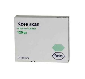 Показания к применениюДлительная терапия больных ожирением или пациентов с избыточной массой тела, в т.ч. имеющих ассоциированные с ожирением факторы риска, в сочетании с умеренно гипокалорийной диетой; в комбинации с гипогликемическими препаратами (метформин, производные сульфонилмочевины и/или инсулин) или умеренно гипокалорийной диетой у больных сахарным диабетом 2 типа с избыточной массой тела или ожирением.Применение при беременности и кормлении грудьюПрепарат категории В.В исследованиях репродуктивной токсичности на животных тератогенного и эмбриотоксического эффекта препарата не наблюдалось. В отсутствие тератогенного эффекта у животных ожидать подобного эффекта у человека не следует. Однако из-за отсутствия клинических данных Ксеникал не следует назначать беременным.Выведение орлистата с грудным молоком не изучалось, поэтому его не следует принимать во время кормления грудью.Противопоказаниясиндром хронической мальабсорбции; холестаз; повышенная чувствительность к препарату или любым другим компонентам, содержащимся в капсуле.СоставДействующее вещество: Орлистат (orlistat)Концентрация действующего вещества (мг): 120