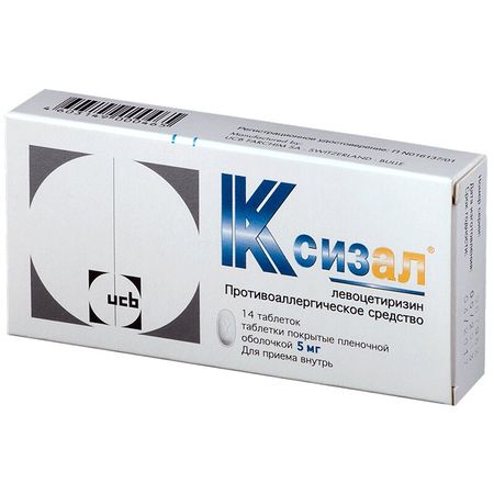 Показания Симптоматическая терапия аллергических заболеваний и состояний: круглогодичный (персистирующий) и сезонный (интермиттирующий) аллергический ринит и аллергический конъюнктивит (зуд, чиханье, ринорея, слезотечение, гиперемия конъюнктивы, заложенность носа); поллиноз (сенная лихорадка); крапивница (в т.ч. хроническая идиопатическая крапивница); отек Квинке; другие аллергические дерматозы, сопровождающиеся зудом и высыпаниями. Фармакологическое действие Блокатор гистаминовых H1-рецепторов, энантиомер цетиризина, относится к группе конкурентных антагонистов гистамина. Сродство к гистаминовым H1-рецепторам у левоцетиризина в 2 раза выше, чем у цетиризина. Левоцетиризин оказывает влияние на гистаминозависимую стадию аллергических реакций, а также уменьшает миграцию эозинофилов, уменьшает сосудистую проницаемость, ограничивает высвобождение медиаторов воспаления. Предупреждает развитие и облегчает течение аллергических реакций, обладает антиэкссудативным, противозудным действием, практически не оказывает антихолинергического и антисеротонинового действия. В терапевтических дозах практически не оказывает седативного эффекта. Лекарственное взаимодействие Изучение взаимодействия левоцетиризина с другими лекарственными препаратами не проводилось. При изучении лекарственного взаимодействия рацемата цетиризина с псевдоэфедрином, циметидином, кетоконазолом, эритромицином, азитромицином, глипизидом и диазепамом клинически значимого нежелательного взаимодействия не выявлено. При одновременном применении с теофиллином (400 мг/сут) общий клиренс цетиризина снижается на 16%, фармакокинетические параметры теофиллина не меняются. В ряде случаев при одновременном применении левоцетиризина с этанолом или лекарственными препаратами, оказывающими угнетающее действие на ЦНС, возможно усиление их влияния на ЦНС, хотя доказано, что рацемат цетиризина потенцирует эффект алкоголя.