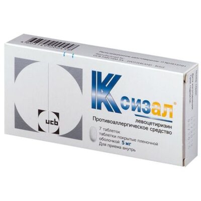 Показания Симптоматическая терапия аллергических заболеваний и состояний: круглогодичный (персистирующий) и сезонный (интермиттирующий) аллергический ринит и аллергический конъюнктивит (зуд, чиханье, ринорея, слезотечение, гиперемия конъюнктивы, заложенность носа); поллиноз (сенная лихорадка); крапивница (в т.ч. хроническая идиопатическая крапивница); отек Квинке; другие аллергические дерматозы, сопровождающиеся зудом и высыпаниями. Фармакологическое действие Блокатор гистаминовых H1-рецепторов, энантиомер цетиризина, относится к группе конкурентных антагонистов гистамина. Сродство к гистаминовым H1-рецепторам у левоцетиризина в 2 раза выше, чем у цетиризина. Левоцетиризин оказывает влияние на гистаминозависимую стадию аллергических реакций, а также уменьшает миграцию эозинофилов, уменьшает сосудистую проницаемость, ограничивает высвобождение медиаторов воспаления. Предупреждает развитие и облегчает течение аллергических реакций, обладает антиэкссудативным, противозудным действием, практически не оказывает антихолинергического и антисеротонинового действия. В терапевтических дозах практически не оказывает седативного эффекта. Лекарственное взаимодействие Изучение взаимодействия левоцетиризина с другими лекарственными препаратами не проводилось. При изучении лекарственного взаимодействия рацемата цетиризина с псевдоэфедрином, циметидином, кетоконазолом, эритромицином, азитромицином, глипизидом и диазепамом клинически значимого нежелательного взаимодействия не выявлено. При одновременном применении с теофиллином (400 мг/сут) общий клиренс цетиризина снижается на 16%, фармакокинетические параметры теофиллина не меняются. В ряде случаев при одновременном применении левоцетиризина с этанолом или лекарственными препаратами, оказывающими угнетающее действие на ЦНС, возможно усиление их влияния на ЦНС, хотя доказано, что рацемат цетиризина потенцирует эффект алкоголя.