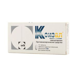 Показания к применениюСимптоматическая терапия аллергических заболеваний и состояний:— круглогодичный (персистирующий) и сезонный (интермиттирующий) аллергический ринит и аллергический конъюнктивит (зуд, чиханье, ринорея, слезотечение, гиперемия конъюнктивы, заложенность носа);— поллиноз (сенная лихорадка);— крапивница (в т.ч. хроническая идиопатическая крапивница);— отек Квинке;— другие аллергические дерматозы, сопровождающиеся зудом и высыпаниями.Применение при беременности и кормлении грудьюАдекватных и строго контролируемых клинических исследований по безопасности применения препарата у беременных женщин не проводилось, поэтому Ксизал; не следует назначать при беременности.Левоцетиризин выделяется с грудным молоком, поэтому при необходимости применения препарата в период лактации грудное вскармливание на время приема следует прекратить.В экспериментальных исследованиях на животных не выявлено каких-либо прямых или косвенных неблагоприятных эффектов левоцетиризина на развивающийся плод (в т.ч. в постнатальном периоде), течение беременности и родов также не изменялось.Противопоказания— терминальная стадия почечной недостаточности (КК менее 10 мл/мин);— детский возраст до 6 лет (для таблеток);— детский возраст до 2 лет (для капель для приема внутрь);— беременность;— повышенная чувствительность к компонентам препарата, особенно у пациентов с галактоземией или тяжелой непереносимостью лактозы (для таблеток);— повышенная чувствительность к левоцетиризину или производным пиперазина.С осторожностью следует применять препарат при хронической почечной недостаточности (требуется коррекция режима дозирования), у пациентов пожилого возраста (при возрастном снижении клубочковой фильтрации).Побочное действиеВозможные побочные эффекты приведены ниже по системам организма и частоте возникновения: часто (≥1/10); нечасто (от ≥1/100 до <1/10); редко (от ≥1/1000 до <1/100); очень редко (от ≥1/10 000 до < 1/1000).Со стороны ЦНС: нечасто — головная боль, утомляемость, сонливость; редко — астения; очень редко — агрессия, возбуждение, судороги, галлюцинации, депрессия, нарушение зрения.Со стороны сердечно-сосудистой системы: очень редко — тахикардия.Со стороны дыхательной системы: очень редко — диспноэ.Со стороны пищеварительной системы: нечасто — сухость во рту; редко — боль в животе; очень редко — тошнота, диарея, гепатит, изменение функциональных проб печени.Со стороны костно-мышечной системы: очень редко – миалгия.Со стороны обмена веществ: очень редко — увеличение массы тела.Аллергические реакции: очень редко – зуд, сыпь, крапивница, ангионевротический отек, анафилаксия.СоставЛевоцетиризина дигидрохлорид 5 мг.Вспомогательные вещества: лактозы моногидрат, целлюлоза микрокристаллическая, кремния диоксид коллоидный, магния стеарат.Состав оболочки: опадрай Y-1-7000 (гипромеллоза, титана диоксид (Е171), макрогол 400).