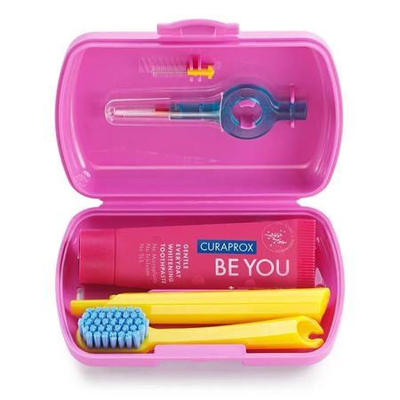 Дорожный набор BE YOU в комплектации: Зубная паста Be you red со вкусом ягод можжевельника и хурмы 10 мл Зубная щётка CS5460 Межзубные ёршики CPS prime 07, CPS prime 09 Держатель UHS 409 Розовый бокс