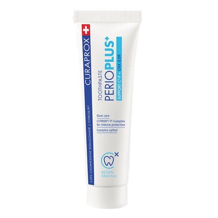 Зубная паста «CURAPROX Perio Plus Support», 75 мл, на основе хлоргексидина 0,09%, с комплексом биофлавоноидов CITROX. Рекомендована для поддержания баланса и предотвращения активного роста патогенной микрофлоры в полости рта. Эффективно снижает риск воспаления слизистой, замедляет процесс формирования биопленки на зубах. Оказывает против кариозное действие. Не содержит SLS (лаурилсульфат натрия). Обладает приятным вкусом. Не изменяет вкусовых ощущений.