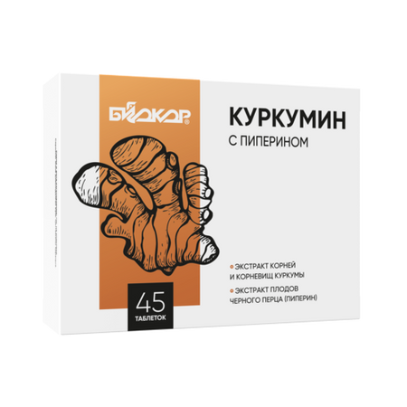 Куркумин с пиперином Биокор, 45 шт, таблетки
