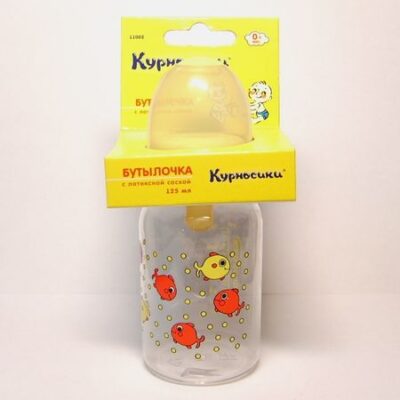 Бутылочка с латексной соской молочной, 125 мл. Бутылочка произведена из полипропилена — термостойкого небьющегося пластика, не вступающего в химическую реакцию с молоком и не выделяющего вредных веществ при стерилизации. Возраст применения — с рождения.Цвет: голубой, желтый.