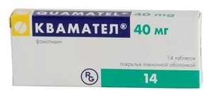 Показания к применениюязвенная болезнь двенадцатиперстной кишки и желудка в фазе обострения, профилактика рецидивов . лечение и профилактика симптоматических язв желудка и двенадцатиперстной кишки (связанных с приемом НПВП, стрессовых, послеоперационных) . эрозивный гастродуоденит . функциональная диспепсия, ассоциированная с повышенной секреторной функцией желудка . рефлюкс-эзофагит . синдром Золлингера-Эллисона . профилактика рецидивов кровотечений из верхних отделов ЖКТ . предупреждение аспирации желудочного сока при проведении общей анестезии (синдром Мендельсона).Применение при беременности и кормлении грудьюПрепарат противопоказан к применению при беременности. При необходимости применения препарата в период лактации грудное вскармливание следует прекратить.Противопоказаниябеременность . период лактации (грудного вскармливания) . детский возраст . повышенная чувствительность к компонентам препарата . повышенная чувствительность к другим блокаторам гистаминовых H2-рецепторов.Побочное действиеСо стороны пищеварительной системы: сухость во рту, тошнота, рвота, боли в животе, метеоризм, запор, диарея, снижение аппетита . повышение активности трансаминаз печени, гепатоцеллюлярный, холестатический или смешанный гепатит, острый панкреатит. Со стороны системы кроветворения: очень редко — агранулоцитоз, панцитопения, лейкопения, тромбоцитопения, гипо- или аплазия костного мозга. Аллергические реакции: крапивница, кожная сыпь, зуд, бронхоспазм, ангионевротический отек, анафилактический шок. Со стороны сердечно-сосудистой системы: аритмия, брадикардия, AV-блокада, снижение АД. Со стороны ЦНС: головная боль, головокружение, сонливость, галлюцинации, спутанность сознания, повышенная утомляемость, депрессия, возбуждение, тревога. Со стороны органов чувств: снижение остроты зрения, шум в ушах. Со стороны половой системы: при длительном применении в высоких дозах — гиперпролактинемия, гинекомастия, аменорея, снижение либидо. Со стороны костно-мышечной системы: артралгия, мышечные спазмы. Дерматологические реакции: алопеция, обыкновенные угри, сухость кожи, токсический эпидермальный некролиз. Прочие: лихорадка.СоставФамотидин 40 мг Вспомогательные вещества: кремния диоксид коллоидный — 1 мг, магния стеарат — 2 мг, повидон К90 — 4 мг, карбоксиметилкрахмал натрия (тип А) — 6 мг, тальк — 6 мг, крахмал кукурузный — 51 мг, лактозы моногидрат — 90 мг. Состав пленочной оболочки: железа оксид красный — 0.024 мг, кремния диоксид коллоидный — 0.088 мг, титана диоксид — 0.276 мг, макрогол 6000 — 0.499 мг, сепифильм 003 — 6.613 мг (макрогол-40 стеарат (тип I) — 8-12%, целлюлоза микрокристаллическая — 35-45%, гипромеллоза — 45-55%).