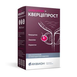 QUERCEPROST — биологически активная добавка к пище , простатотропный антиоксидантный комплекс.Кверцепрост — это дополнительный источник селена, цинка, источника ликопина, кверцетина и нарингина. Прием будет полезен для поддержки здоровья простаты.Содержание активных веществ в суточной дозировке (2 капсулы):Компонент Количество %Кверцетин 100 мг 333²,*Ликопин 10 мг 200²,*Нарингин 200 мг 100²Селен 0,07 мг 100¹Цинк 12 мг 80¹1- % от рекомендуемого уровня суточного потребления согласно ТР ТС 022/2011 (Приложение 2).2- % от адекватного уровня потребления согласно «Единым санитарно-эпидемиологическим и гигиеническим требованиям к товарам подлежащим санитарно-эпидемиологическому надзору (контролю)» (Приложение 5).*- не превышает верхний допустимый уровень потребления.Преимущества БАД КВЕРЦЕПРОСТ Содержит комбинацию трех мощных антиоксидантов, способствующих поддержанию мужского здоровья: кверцетин, ликопин, нарингин. Состав усилен важными для мужского здоровья микроэлементами — цинком и селеном в органической (легкоусвояемой) форме. Экономично: 1 упаковка = 1 месяц приема. Содержит максимально разрешенную суточную дозу кверцетина. Можно принимать длительным курсом.Свойства и действие комплекса Кверцепрост обусловлены свойствами активных компонентов.Кверцетин — это натуральное биологически активное соединение из семейства флавоноидов. Содержится во многих растениях: софора японская, каперсы, любисток и др.Кверцетин уменьшает чувствительность клеток простаты к негативному воздействию андрогенов. Также кверцетин обладает сильными антиоксидантными свойствами, что позволяет его использовать как для предупреждения нежелательных состояний, связанных с избытком свободных радикалов в простате (разрастание тканей, хроническое воспаление), так и для поддержки общего здоровья, в том числе сердечно-сосудистой системы, когнитивных функций.Кверцетин также проявляет противовоспалительные свойства, воздействуя на уровень воспалительных цитокинов и улучшая регуляцию иммунной системы.Ликопин — это мощный антиоксидант из семейства каротиноидов. Содержится в плодах помидоров, арбузов, гуавы и других фруктах и овощах красного цвета.Ликопин отличается высокой стабильностью, что объясняет его способность эффективно нейтрализовать свободные радикалы, предотвращая окислительные повреждения клеток, особенно в простате, так как накапливается именно в этом органе. Кроме того, ликопин способствует подавлению хронических воспалительных процессов.Нарингин получают из косточек грейпфрута. Это биологически активное соединение, принадлежащее к классу флавоноидов и известное своим разносторонним положительным влиянием на здоровье человека.Нарингин выделяется своей способностью бороться с окислительным стрессом, то есть с избытком свободных радикалов, которые могут нанести вред клеткам и тканям организма. Нарингин помогает предотвращать подобные повреждения в простате, оберегая ее клетки от преждевременного старения и уменьшая риск развития различных заболеваний.Цинк (в форме цитрата)Цинк играет фундаментальную роль в поддержании здоровья человека, участвуя во множестве биологических процессов.Прежде всего, цинк является ключевым участником в обеспечении нормального функционирования иммунной системы. Этот микроэлемент активно взаимодейст