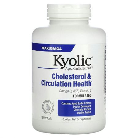 †† Специальное средство из чеснока Добавка с рыбьим жиром без запахаAged Garlic ExtractСертификат соответствия стандартам надлежащей производственной практики (GMP)Добавка с омега-3 от Kyolic® — это очищенный на молекулярном уровне концентрат рыбьего жира, прошедший проверку на чистоту и эффективность, который содержит высокую концентрацию экологически чистых важнейших омега-3 жирных кислот ЭПК и ДГК. Этот высокоочищенный и концентрированный рыбий жир получают из холодной, нетронутой воды, а затем смешивают с экстрактом выдержанного чеснока без запаха для синергетического воздействия на ваш организм.Эта отборная комбинация омега-3 от Kyolic не только поддерживает уровень холестерина и триглицеридов в пределах нормы, но и поддерживает кровообращение и естественную противовоспалительную реакцию организма.
