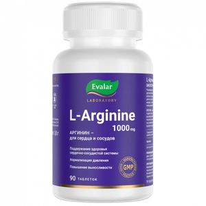 L-Аргинин 1000 мг/ L-Arginine 1000 mg. Незаменимая аминокислота в активной L-форме.Активное вещество: L-АргининСпособствует: росту мышечной ткани, улучшению сперматогенеза, повышению физической выносливости, расширению сосудов и нормализации давления, поддержанию здоровья сердечно-сосудистой системы, увеличению притока кислорода к сердечной мышце.Аргинин функционирует в организме как свободная аминокислота, которая входит в состав белков и в небольших количествах вырабатывается в организме человека. Она существует в форме L- и D- изомеров. Наибольшую пользу человеку приносит аргинин в свободной L-форме: он эффективно действует на рост мышечной ткани, повышает физическую выносливость и помогает сжигать жир, а также стимулирует выработку инсулина, необходимого для выработки креатина, который влияет на работу головного мозга.Аргинин является предшественником оксида азота (NO), химического соединения, вызывающего расширение кровеносных сосудов, что в свою очередь помогает улучшить доставку кислорода и питательных веществ к органам. Согласно нескольким исследованиям*, этот сосудорасширяющий эффект также полезен в случаях эректильной дисфункции.Аргинин участвует в цикле мочевины и способствует выведению из организма токсического соединения аммиака.В препарате L-аргинин 1000 мг от Evalar Laboratory аргинин содержится в активной L-форме. Формула премиального качества L-аргинин получена из самой чистой аминокислоты в свободной форме, а, значит, быстрее усваивается и действует на организм на клеточном уровне. Высокая суточная дозировка L-аргинина, 3000 мг, позволяет быстро и эффективно восполнить дефицит аминокислоты в организме и справиться с его негативными последствиями