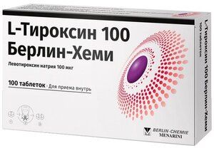 Показания к применению- гипотиреоз;- эутиреоидный зоб;- в качестве заместительной терапии и для профилактики рецидива зоба после резекции щитовидной железы;- рак щитовидной железы (после оперативного лечения);- диффузный токсический зоб: после достижения эутиреоидного состояния тиреостатиками (в виде комбинированной или монотерапии);- в качестве диагностического средства при проведении теста тиреоидной супрессии.Применение при беременности и кормлении грудьюПри беременности и в период лактации (грудного вскармливания) терапия препаратом, назначенным по поводу гипотиреоза, должна продолжаться. При беременности требуется увеличение дозы препарата из-за повышения уровня содержания тироксин-связывающего глобулина. Количество тиреоидного гормона, секретируемого с грудным молоком при лактации (даже при проведении лечения высокими дозами препарата), недостаточно для того, чтобы вызвать какие-либо нарушения у ребенка.Применение препарата в комбинации с тиреостатическими препаратами при беременности противопоказано, т.к. прием левотироксина может потребовать увеличение доз тиреостатиков. Поскольку тиреостатики, в отличие от левотироксина, могут проникать через плацентарный барьер, у плода возможно развитие гипотиреоза.В период грудного вскармливания препарат следует принимать с осторожностью, строго в рекомендуемых дозах под наблюдением врача.Противопоказания- повышенная чувствительность к компонентам препарата;- нелеченный тиреотоксикоз;- острый инфаркт миокарда, острый миокардит;- нелеченная недостаточность функции надпочечников.С осторожностью следует назначать препарат при ИБС (атеросклероз, стенокардия, инфаркт миокарда в анамнезе), артериальной гипертензии, аритмии, при сахарном диабете, тяжелом длительно существующем гипотиреозе, синдроме мальабсорбции (может потребоваться коррекция дозы).Побочное действиеПри применении препарата по показаниям в рекомендуемых дозах под контролем врача побочные эффекты не наблюдаются.При повышенной чувствительности к препарату могут наблюдаться аллергические реакции.Состав1 таблетка содержит:Активное вещество: левотироксин натрия 100 мкг.Вспомогательные вещества: кальция гидрофосфата дигидрат — 31.9 мг, целлюлоза микрокристаллическая — 32 мг, карбоксиметилкрахмал натрия (тип А) — 24 мг, декстрин — 13.6 мг, длинноцепочечные неполные глицериды — 2.4 мг.