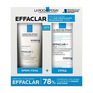 В набор входят два продукта для увлажнения проблемной кожи:1. Ультрауспокаивающий восстанавливающий уход против несовершенств Н Iso-Biome, 40 млУльтрауспокаивающий восстанавливающий уход Effaclar H Iso-Biome не только увлажняет кожу, возвращая ощущение комфорта, но и борется с несовершенствами. Он подходит для проблемной, ослабленной в результате использования пересушивающих средств и чувствительной кожи. Мгновенно возвращает ощущение комфорта. Кожа интенсивно увлажнена в течение 48 часов.Результат применения: успокаивает кожу, устраняет сухость и шелушение увлажняет и защищает не вызывает жирный блеск сокращает несовершенства, чёрные точки и постакне2. Успокаивающий очищающий крем-гель против несовершенств Н Iso-Biome, 200 млУспокаивающий очищающий крем-гель против несовершенств Effaclar H Iso-Biome не только бережно удаляет загрязнения с кожи, возвращая ощущение комфорта, но и борется с несовершенствами. Средство подходит для проблемной кожи лица и тела, ослабленной в результате использования пересушивающих средств для борьбы с акне.Результат применения: мягкое и деликатное очищение увлажнение в течение 24 часов сокращение несовершенствАктивные компоненты аква позе филиформис — регулирует микробиом проблемной кожи, сохраняя на ее поверхности полезные бактерии церамид — восстанавливает естественный защитный барьер кожи ниацинамид — успокаивает кожу комплекс Bix’ Active + прокерад — сокращает несовершенства и следы акне, усиливая действие других средств для проблемной кожи масло ши — обеспечивает интенсивное восполнение липидов, способствуя уменьшению сухости и ощущения стянутости кожи термальная вода La Roche-Posay — смягчает, увлажняет, успокаивает кожу, обладает антиоксидантным эффектом