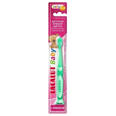 LACALUT ЗУБНАЯ ЩЕТКА BABY /ДО 4 ЛЕТ/С ПРИСОСКОЙ — Средство индивидуальной гигиены. Разные цветовые исполнения ВНИМАНИЕ!!! При заказе отсутствует возможность выбрать определённый цвет Особенности: Присоска для крепления детской зубной щетки к раковине, зеркалу или полке. Детская зубная щетка Lacalut baby разработана специально для детей с рождения до 4-х лет. Мягкая нейлоновая щетина ровно подстрижена и тщательно удаляет налет с детской эмали. Безопасная прорезиненная головка зубной щетки предохраняет малыша от травм во время самостоятельной чистки. Удобная эргономичная ручка изготовлена из нескользящего материала, ее удобно держать в руке ребенку и взрослому. Присоска в основании щетки позволяет соблюдать ее гигиеническое хранение между чистками. Мягкие тонкие щетинки зубной щетки бережно массируют нежные десны и очищают зубы от мягкого зубного налета.
