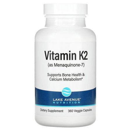 Витамин К2 от Lake Avenue NutritionВ виде менахинона-7Поддерживает здоровье костей и метаболизм кальция*Не содержит ГМО и соиПроизводится на предприятии, имеющем регистрацию текущей надлежащей производственной практики (GMP)