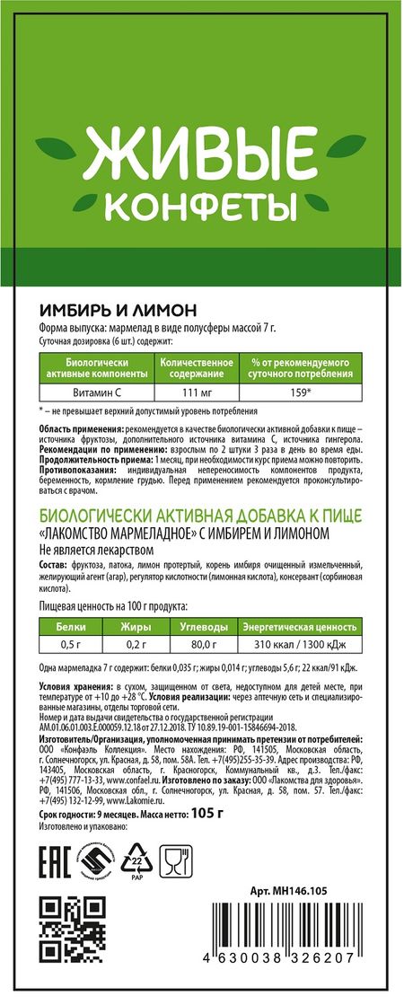 Главная » Аптека Лакомства для здоровья мармелад Живые конфеты с имбирем и лимоном 105г Просмотров 5 Конфаэль