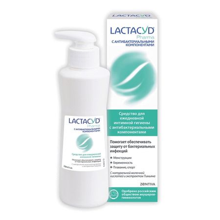 LACTACYD PHARMA — это специальная линия средств с более низким pH 3,5, который стимулирует рост полезных лактобактерий, способствуя восстановлению и поддержанию естественной микрофлоры интимной зоны. В состав входят активные природные компоненты, обладающие терапевтическим действием. Эффективность средств линейки LACTACYD PHARMA подтверждена большим количеством клинических исследований и тестирований LACTACYD PHARMA с антибактериальными компонентами создано специально для усиления естественной защиты интимной зоны. В его состав входят активные природные компоненты. Натуральная молочная кислота поддерживает сбалансированный pH интимной микрофлоры. Экстракт Тимьяна оказывает антисептическое и антибактериальное действие, тем самым укрепляя естественный защитный барьер и предотвращая появление бактериальных инфекций и неприятного запаха. А его легкий и приятный травяной аромат подарит вам чувство изумительной свежести. LACTACYD PHARMA с антибактериальными компонентами рекомендуется как для ежедневного применения, так и в случаях, когда микрофлора ослаблена и повышен риск вагинальной инфекции: во время менструации, в период беременности и после родов, при приеме лекарств. LACTACYD PHARMA с антибактериальными компонентами cредство для интимной гигиены для защиты от бактериальных инфекций — прозрачный гель, относительно жидкой консистенции, запах приятный, нежный