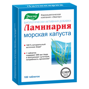 Йод относится к жизненно важным микроэлементам, без него невозможно нормальное функционирование щитовидной железы. Йод – главный компонент гормонов щитовидной железы, который участвует: в регуляции белкового, жирового, углеводного и энергетического обмена в организме; в развитии всех органов и систем – регулируют деятельность головного мозга, нервной и сердечно-сосудистой системы, половых и молочных желёз; в росте и развитии детей и школьников, в формировании их интеллектуальных способностей.Ламинария — это созданный самой природой, идеально сбалансированный морской продукт, который, кроме йода, содержит:  альгиновую кислоту и ее соли (до 21%) маннит (20-25%) полисахарид ламинарии (до 21%) белковые вещества (до 9%) L-фруктозу (до 4%) витамины: A, B1, B2, B12, C, D, E, пантотеновую и фолиевую кислоты 40 микро- и макроэлементов в легко усваиваемой организмом форме: бром, марганец, кобальт, цинк, магний, железо, калий, натрий, сера, фосфор, азот и др.Ламинария, являясь натуральным источником йода, восполняет его дефицит в организме естественным путем, поддерживает здоровье щитовидной железы, способствует умственной и физической работоспособности организма. Это самый популярный продукт среди японцев – признанных долгожителей. Благодаря богатому составу биологически активных веществ, ламинария оказывает благоприятное воздействие на организм человека в целом.Одна таблетка Ламинарии удовлетворяет суточную физиологическую потребность организма в йоде (200 мкг) на 133%.Данный уровень содержания йода в 1-й таблетке находится в пределах его естественного потребления с пищей, поскольку согласно МР 2.3.1.2432-08 «Нормы физиологических потребностей в энергии и пищевых веществах для различных групп населения Российской Федерации», потребление йода с пищей широко варьирует в различных геохимических регионах: 65-230 мкг/сут.Установленные уровни потребности – 130-200 мкг/сутки. Верхний допустимый уровень – 600 мкг/сутки. Физиологическая потребность для взрослых – 150 мкг/сутки.Регулярный прием Ламинарии способствует восполнению дефицита йода в организме из натурального источника – ламинарии (морской капусты).