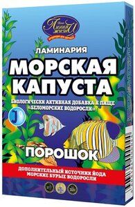 БЕЛОМОРСКИЕ ВОДОРОСЛИ ВАША ЛИНИЯ ЖИЗНИ ЛАМИНАРИЯ — Биологически активная добавка (БАД) к пище — Содержит йод в виде йодидов и йодорганических соединений, высокомолекулярные полисахариды: ламинарин, маннит, альгин, альгиновую кислоту, аскорбиновую кислоту, витамины В1, В2, В12, D, макроэлементы.Внешний вид и свойства: дробленые водоросли фракции от 0,1 до 5 мм, светло-коричневого цветаСодержит йод 500-1000 мкг в рекомендуемой суточной дозе (1/2 чайной ложки — 1 г) — 50-199% от нормы суточного потребления с учетом частичной усвояемости йода согласно ТР ТС 022/2011.Ламинарию используется в качестве дополнительного средства при гипертиреозе, а также для профилактики эндемического зоба, атеросклероза, аденоме предстательной железы, как легкое слабительное средство при хроническом атопическом запоре, хроническом колите, проктите, способствует очищению сосудов.В онкологической клинике выявлено, что порошок ламинарии способствует улучшению общего состояния больных, их психики (А. Д. Турова, А. С. Гладких, 1965).Есть научные данные, что, при регулярном потреблении морской капусты, избыток холестерина перестает откладываться в тканях и легко выводится из организма.ОСОБЕННОСТИ ТЕХНОЛОГИИМетод крупного дробления позволяет избежать повышенной пыльности морской соли, оставшейся после промывания и крупиц песка, который врастает в тело водоросли в течении ее жизни и при дроблении может оказаться в порошке в свободной форме.Данный подход позволяет избежать ухудшения органолептических свойств продукта за счет возможного вдыхания свободной морской соли и попадания песка на зубы в момент приема.