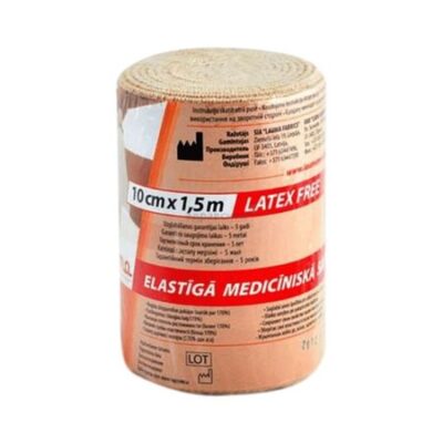 быстро и легко накладывается без перекручивания бинта, надёжно закрепляется и не сползаетЭластичный медицинский бинт высокой степени растяжимости применяется для профилактики и лечения хронических венозных воспалительных процессов в до- и послеоперационный периоды, для профилактики образования гематом и удержания эндопротезов в стабильном состоянии при пластических операциях, а также для профилактики и лечения травм, связанных со спортом.Специальная технология ткачества, применяемая при производстве бинта, обеспечивает отличное качество и сохранение свойств даже при длительном и интенсивном использовании. Металлический фиксатор позволяет удерживать бинт в нужном месте.Эластичный медицинский бинт высокой степени растяжимости (более 170 %)