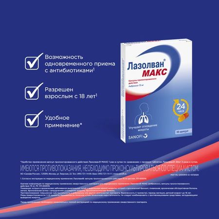 Главная » Аптека Лазолван Макс капсулы с пролонгированным высвобождением 75мг 10шт Просмотров 6 Sanofi/Дельфарм Реймс
