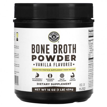 Описание Протеиновая добавка из крупного рогатого скота травяного откормаПолезные для кишечника ингредиентыПоддерживает суставы13 г коллагена17 г белкаПищевая добавкаНе содержит ГМОГовядина травяного откормаKeto, чистый протеиновый порошок из костного бульона для палеодиеты. Наш протеиновый порошок из костного бульона травяного откорма — это полноценный протеин, содержащий хондроитин, глюкозамин и гиалуроновую кислоту, которые помогают поддерживать здоровье суставов.Полезные для кишечника ингредиенты: В отличие от других протеиновых порошков, наша формула состоит из простых ингредиентов. Мы избегаем загустителей, которые могут вызвать дискомфорт в желудке, включая гуаровую камедь и ксантановую камедь. Рекомендации по применению Советы по смешиванию. При смешивании только с жидкостью (кофе, ореховое молоко и т. Д.) Используйте ручной погружной блендер или используйте блендер на самом низком уровне, чтобы избежать излишка пены. Если вы добавляете его в смузи, сначала смешайте все остальные ингредиенты, а затем добавьте порошок костного бульона и помешивайте. В качестве альтернативы добавьте в горячую воду и взбейте порошок костного бульона. Этот продукт образует комки в теплой или холодной воде, если его не смешивать.Правила использования: Этот продукт предназначен в первую очередь для добавления в смузи или ваше любимое ореховое молоко. (См. Советы по смешиванию в верхней части этикетки). Вы также можете добавить его в свои любимые рецепты, в которых используется шоколадный протеиновый порошок. Во избежание чрезмерной пены следует аккуратно взбивать. Ингредиенты Порошок из говяжьего костного бульона, эритритол, тростниковый сахар, натуральные ароматизаторы, стевия, архат. Предупреждения Потребляйте медленно, поскольку слишком быстрое переваривание любого белкового напитка может вызвать вздутие живота. После смешивания вы можете заметить небольшую пену. Это естественный результат использования чистого протеинового порошка из костного бульона. Как и в случае с любыми пищевыми добавками, перед использованием продукта следует проконсультироваться с врачом, особенно если вы беременны, кормите грудью или находитесь под наблюдением врача. Информация о хранении: Хранить в сухом и прохладном месте. Не используйте, если этот продукт был вскрыт или поврежден. Пищевая ценностьРазмер порции: 1 мерная ложка (22 г)Порций в упаковке: прибл. 21 Количество в 1 порции% от суточной нормыКалории80 Всего углеводов4 г1%*Пищевая клетчатка1 г4%*Всего сахара1 г†Содержит 1 г добавленного сахара
