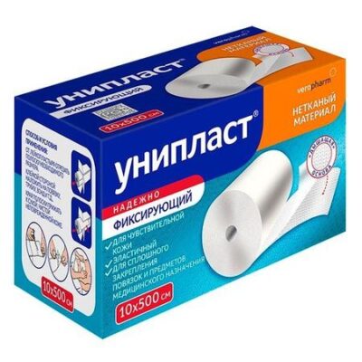 Лейкопластырь фиксирующий нетканый Унипласт 10см x 500см