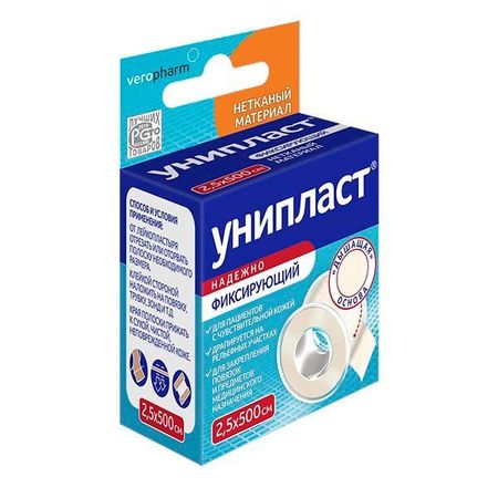 Лейкопластырь фиксирующий нетканый Унипласт 2,5см x 500см