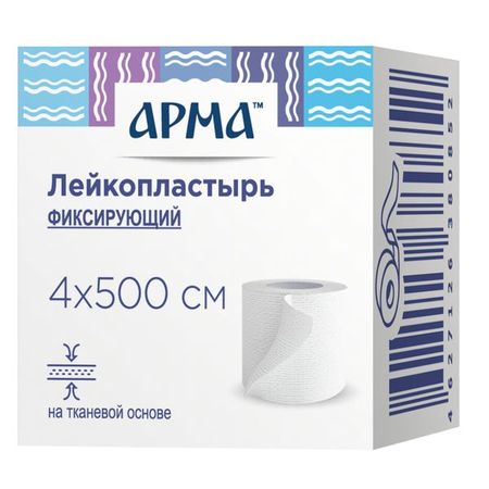 Лейкопластырь фиксирующий тканевый белый Арма 4х500см