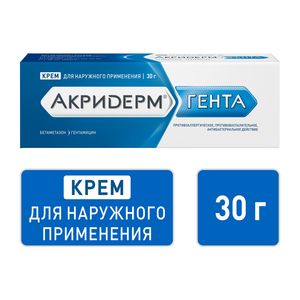 Главная » Аптека Лекарственное средство Акридерм® ГЕНТА Крем для наружного применения 0,05 % + 0,1 % туба 30 г Просмотров 10 Крем белого или почти белого цвета. Акрихин