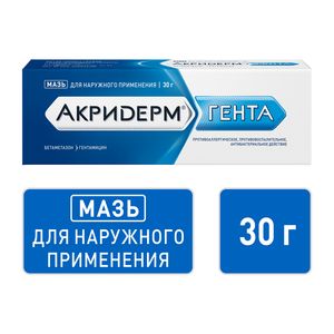 Главная » Аптека Лекарственное средство Акридерм® ГЕНТА Мазь для наружного применения 0,05 % + 0,1 % туба 30 Г Просмотров 10 Полупрозрачная мазь белого или почти белого цвета. Акрихин