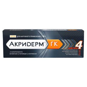 Главная » Аптека Лекарственное средство Акридерм® ГК комбинированный препарат от дерматита Крем туба 30 г Просмотров 3 Крем белого или почти белого цвета. Акрихин