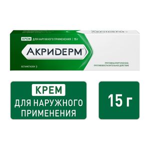 Главная » Аптека Лекарственное средство Акридерм® Крем для наружного применения 0,05 % туба 15 г Просмотров 4 Крем белого или почти белого цвета. Акрихин
