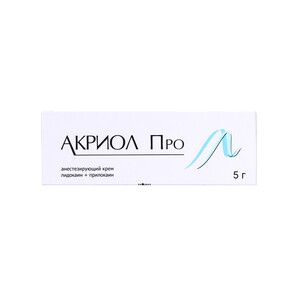 Главная » Аптека Лекарственное средство Акриол Про для обезболивания кожи при уколах 2.5 % + 2.5 % Крем 5 г Просмотров 4 Однородная масса белого или почти белого цвета. Допускается наличие слабого специфического запаха. Акрихин