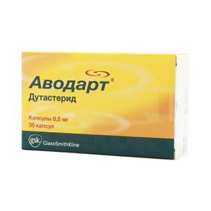 Показания к применениюВ качестве монотерапии:- лечение и профилактика прогрессирования доброкачественной гиперплазии предстательной железы посредством уменьшения размеров предстательной железы, улучшения мочеиспускания, снижения риска возникновения острой задержки мочи и необходимости оперативного вмешательства.В качестве комбинированной терапии с α1-адреноблокаторами:- лечение и профилактика прогрессирования доброкачественной гиперплазии предстательной железы посредством уменьшения размеров предстательной железы, улучшения мочеиспускания, снижения риска возникновения острой задержки мочи и необходимости оперативного вмешательства. В основном изучалась комбинация дутастерида и α1-адреноблокатора тамсулозина.Противопоказания Повышенная чувствительность к дутастериду и другим компонентам препарата; Повышенная чувствительность к другим ингибиторам 5α-редуктазы.Аводарт противопоказан женщинам и детям. С осторожностью: следует назначать препарат при печеночной недостаточности.СоставДействующее вещество: Дутастерид (Dutasteride) Концентрация действующего вещества (мг): 0,5Взаимодействие с другими препаратамиМеры предосторожности.