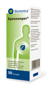 Показания к применениюОтхаркивающее средство растительного происхождения. Препарат оказывает отхаркивающее, противовоспалительное, секретолитическое, бронхолитическое действие, способствует снижению вязкости мокроты и ускорению ее эвакуации.ПротивопоказанияПрепарат принимают внутрь, после еды. При назначении соответственно возрасту: Детям в возрасте от 3 месяцев до 12 месяцев: по 10-16 капель 3 раза/сут. Детям старше 1 года: по 17 капель (с прибавлением по 3 капли на каждый дополнительный год жизни) 3 раза/сут. При назначении соответственно массе тела: Детям в возрасте от 3 месяцев до 12 месяцев: по 10–16 капель 3 раза/сут. Детям старше 1 года: по (общее число капель = 1 капля на кг массы тела + 10 капель) 3 раза/сут.Если масса тела значительно отличается от указанной в таблице данной возрастной категории, назначение препарата должно быть ориентировано только на массу тела пациента. С использованием прилагаемого мерного стаканчика: Детям в возрасте от 3 до 12 месяцев — 1.1 мл 3 раза/сут; детям в возрасте от 1 года до 2 лет — 2.2 мл 3 раза/сут; детям в возрасте от 2 до 6 лет — 3.2 мл 3 раза/сут; детям в возрасте от 6 до 12 лет — 4.3 мл 3 раза/сут; подросткам с 12 лет и взрослым — 5.4 мл 3 раза/сут. Неразведенный сироп Бронхипрет; рекомендуется запивать водой. Перед употреблением содержимое флакона следует взбалтывать. Курс лечения – 10-14 дней. Увеличение продолжительности терапии и проведение повторных курсов лечения возможно по рекомендации врача.СоставЖидкий экстракт травы тимьяна (Thymus vulgaris) (1:2-2.5)* 15 г, жидкий экстракт листьев плюща (Hedera helix) (1:1)** 1.5 гю* Экстрагент: по DAB 10. ** Экстрагент: этанол 70% (в объемном отношении). Содержание этанола: 19% (в объемном отношении). Вспомогательные вещества: вода очищенная, мальтитный сироп, калия сорбат, лимонной кислоты моногидрат.