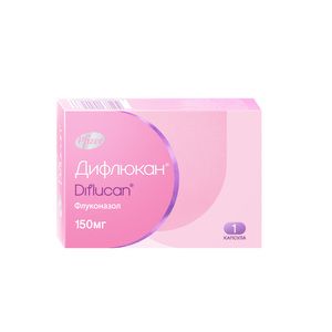 Показания к применениюКриптококкоз, включая криптококковый менингит и инфекции другой локализации (например, легких, кожи), в т.ч. у больных с нормальным иммунным ответом и у больных СПИД, реципиентов пересаженных органов и больных с другими формами иммунодефицита; поддерживающая терапия с целью профилактики рецидивов криптококкоза у больных СПИД;- генерализованный кандидоз, включая кандидемию, диссеминированный кандидоз и другие формы инвазивной кандидозной инфекции, такие как инфекции брюшины, эндокарда, глаз, дыхательных и мочевых путей, в т.ч. у больных со злокачественными опухолями, находящихся в ОИТ и получающих цитотоксические или иммуносупрессивные средства, а также у больных с другими факторами, предрасполагающими к развитию кандидоза;- кандидоз слизистых оболочек, включая слизистые оболочки полости рта и глотки, пищевода, неинвазивные бронхолегочные инфекции, кандидурия, кожно-слизистый и хронический атрофический кандидоз полости рта (связанный с ношением зубных протезов), в т.ч. у больных с нормальной и подавленной иммунной функцией; профилактика рецидива орофарингеального кандидоза у больных СПИД;- генитальный кандидоз; острый или рецидивирующий вагинальный кандидоз; профилактика с целью уменьшения частоты рецидивов вагинального кандидоза (3 и более эпизодов в год); кандидозный баланит;- профилактика грибковых инфекций у больных со злокачественными опухолями, предрасположенных к развитию таких инфекций в результате цитотоксической химиотерапии или лучевой терапии;- микозы кожи, включая микозы стоп, тела, паховой области, отрубевидный лишай, онихомикозы и кожные кандидозные инфекции;- глубокие эндемические микозы у больных с нормальным иммунитетом, кокцидиоидомикоз, паракокцидиоидомикоз, споротрихоз и гистоплазмоз.ПротивопоказанияОдновременное применение терфенадина во время многократного применения флуконазола в дозе 400 мг/сут и более;- одновременное применение с препаратами, увеличивающими интервал QT и метаболизирующимися с помощью изофермента CYP3A4, такими как цизаприд, астемизол, эритромицин, пимозид и хинидин;- дефицит сахаразы/изомальтазы, непереносимость фруктозы, глюкозо-галактозная мальабсорбция (для порошка для приготовления суспензии);- непереносимость галактозы, лактазная недостаточность и нарушение всасывания глюкозы/галактозы (для капсул);- детский возраст до 3 лет (для капсул);- повышенная чувствительность к флуконазолу, другим компонентам препарата или азольным веществам со сходной с флуконазолом структурой.СоставДействующее вещество: Флуконазол (Fluconazole)Концентрация действующего вещества (мг): 150
